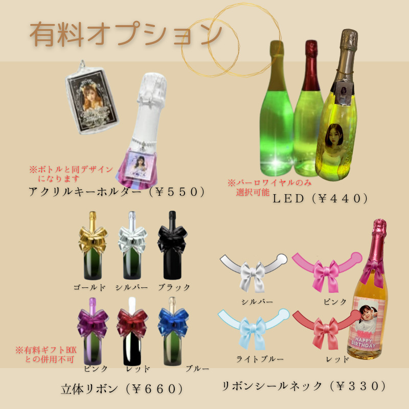 各オプションのお値段をお確かめの上、ご注文ください。※20歳未満への酒類の販売は固くお断りさせていただきます。